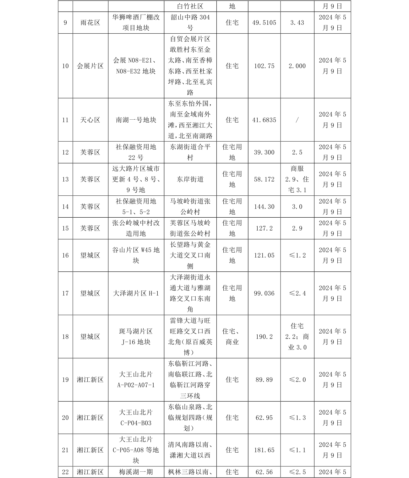 从分布区域看,湘江新区18宗,占了一半;开福区5宗、雨花区4宗、芙蓉区4宗、望城区3宗,天心区1宗、会展片区1宗。