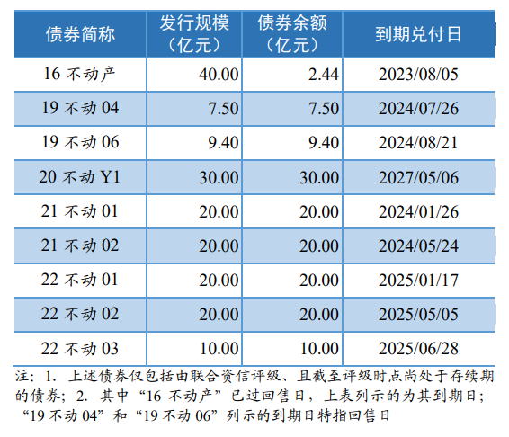 根据平安不动产2023年中期报告,“21不动01”的到期日为2024年1月26日,债券余额为20亿元;“21不动02”到期日为2024年5月24日,债券余额为20亿元。另外,“19不动04”和“19不动06”将分别在今年7月26日和8月21日到期回售,金额分别为7.50亿元和9.40亿元。