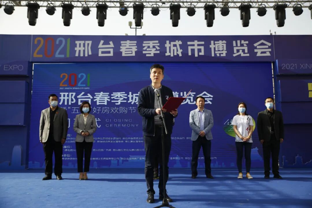2021年5月4日下午4点,2021邢台春季城市博览会暨五一好房欢购节闭幕式隆重举行。邢台广播电视台副台长王志强;邢台广播电视台经营中心总监、邢台市广告协会会长王喆;邢台广播电视台交通音乐广播总监 、《住在邢台·第1房产》广播节目负责人董毅;邢台市广告协会秘书长、邢台三木广告总经理赵伟峰;邢台房地产业协会执行秘书长、中鼎地产常务副总裁姜晓亮;邢台房地产业协会专职副秘书长贾丽霞;邢台房地产业协会营销委执行主任、家乐园营销管理中心副总经理张永刚等领导和嘉宾出席了闭幕仪式。