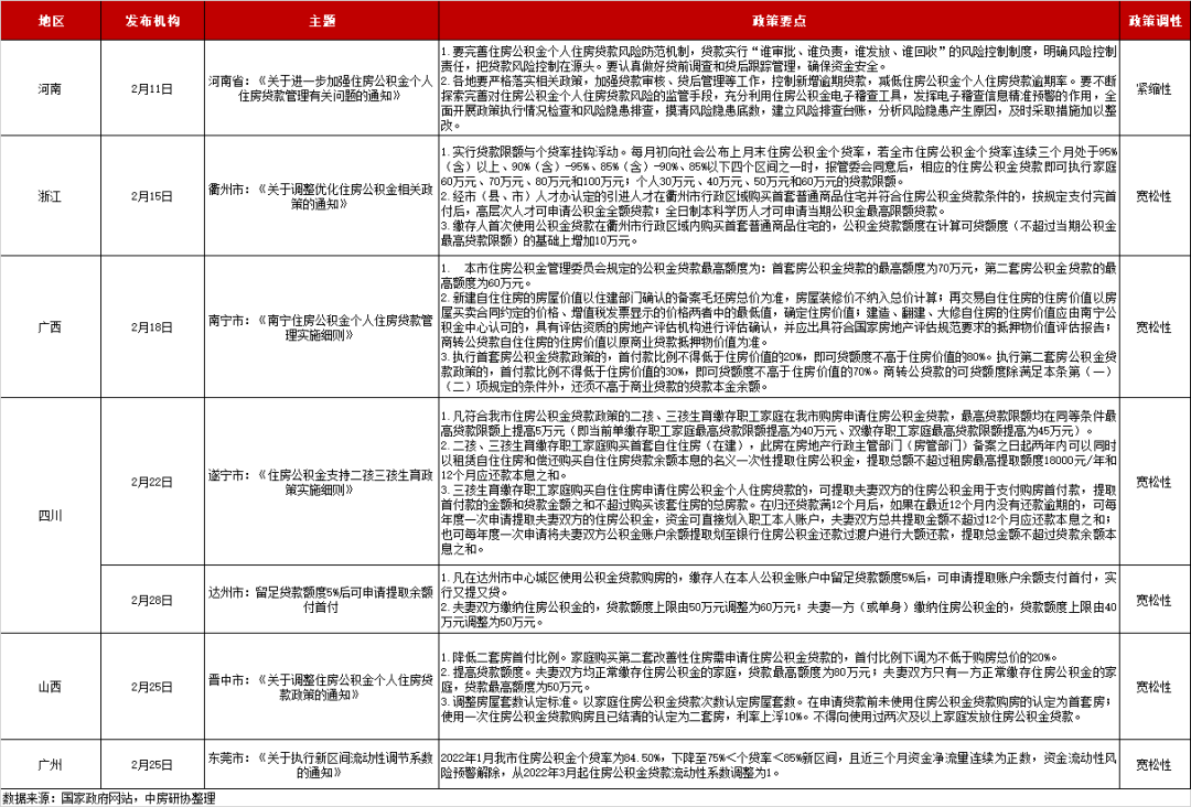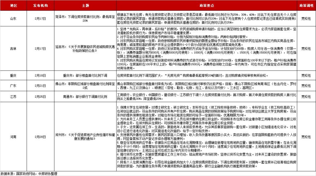 三、地方政策:多地降首付比例、提贷款额度,地方政策环境持续改善