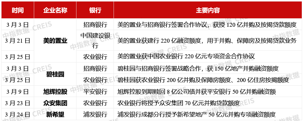优质民营房企受到融资支持,参与收并购。其中,美的置业获得招商银行、建设银行和农业银行等多家银行的融资支持。平安银行、浦发银行、邮储银行也积极与房地产企业签订并购融资战略合作协议。