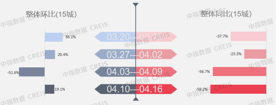 ▌周度整体:楼市整体成交环比上升,同比降幅继续扩大数据来源:中指数据CREIS