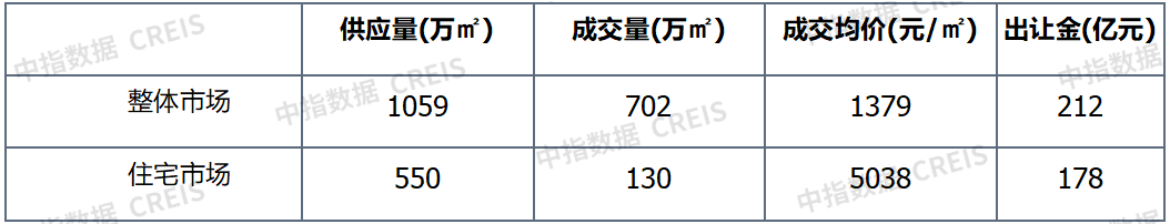 表:40个大中城市土地市场情况(市本级)数据来源:中指数据CREIS