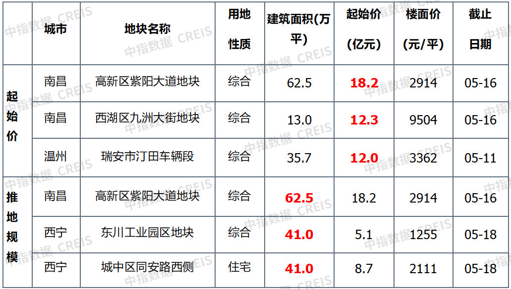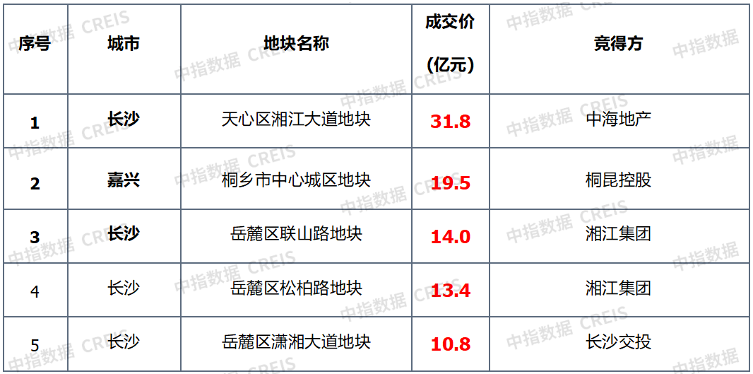 ▌宅地总价TOP5:榜单总额环比上涨,长沙天心区宅地领衔