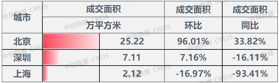 表:一线城市成交面积同环比情况数据来源:中指数据CREIS