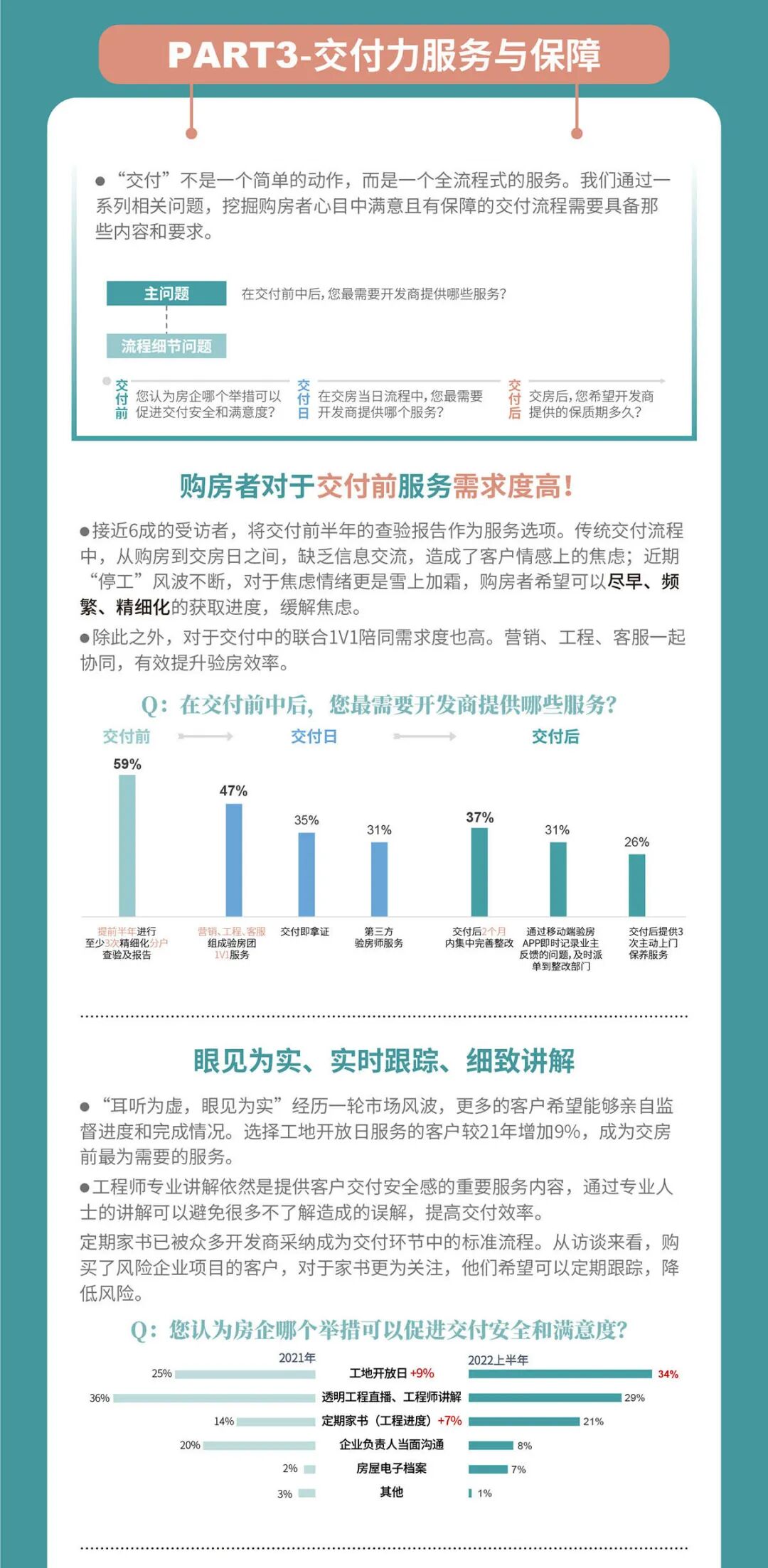 在房企全面提升交付力成为趋势的当下,唯有消费端买账,购房者和客户认可,才是硬核产品力。基于此,在买方市场,我们针对已交付企业的项目业主进行回访,与此同时,在大众消费端启动客需调研问卷,以了解到最真实的交付声音、痛点与诉求。