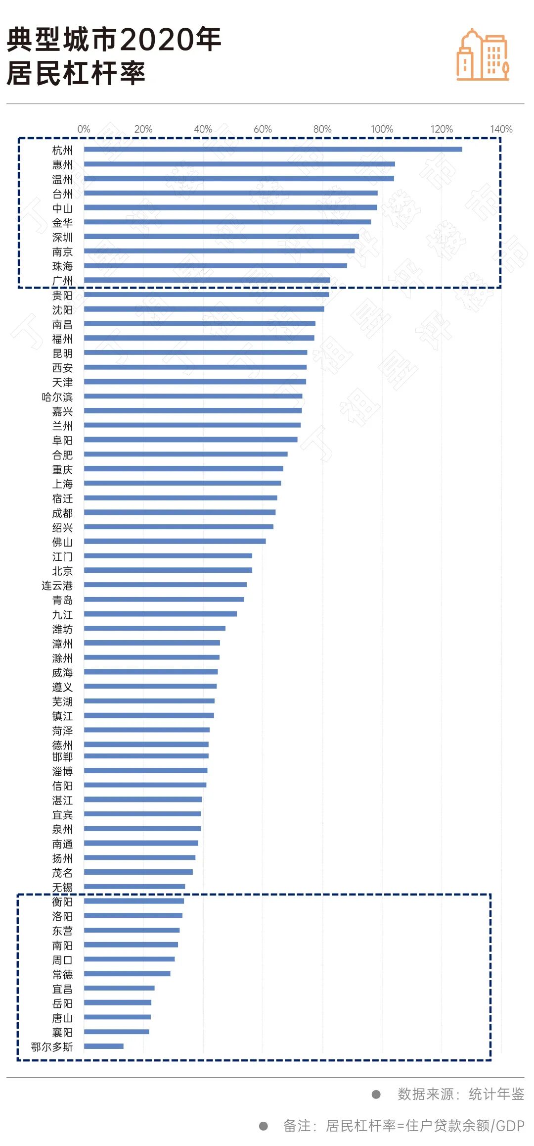 2020年居民杠杆率较高的城市大致可以分为两类: