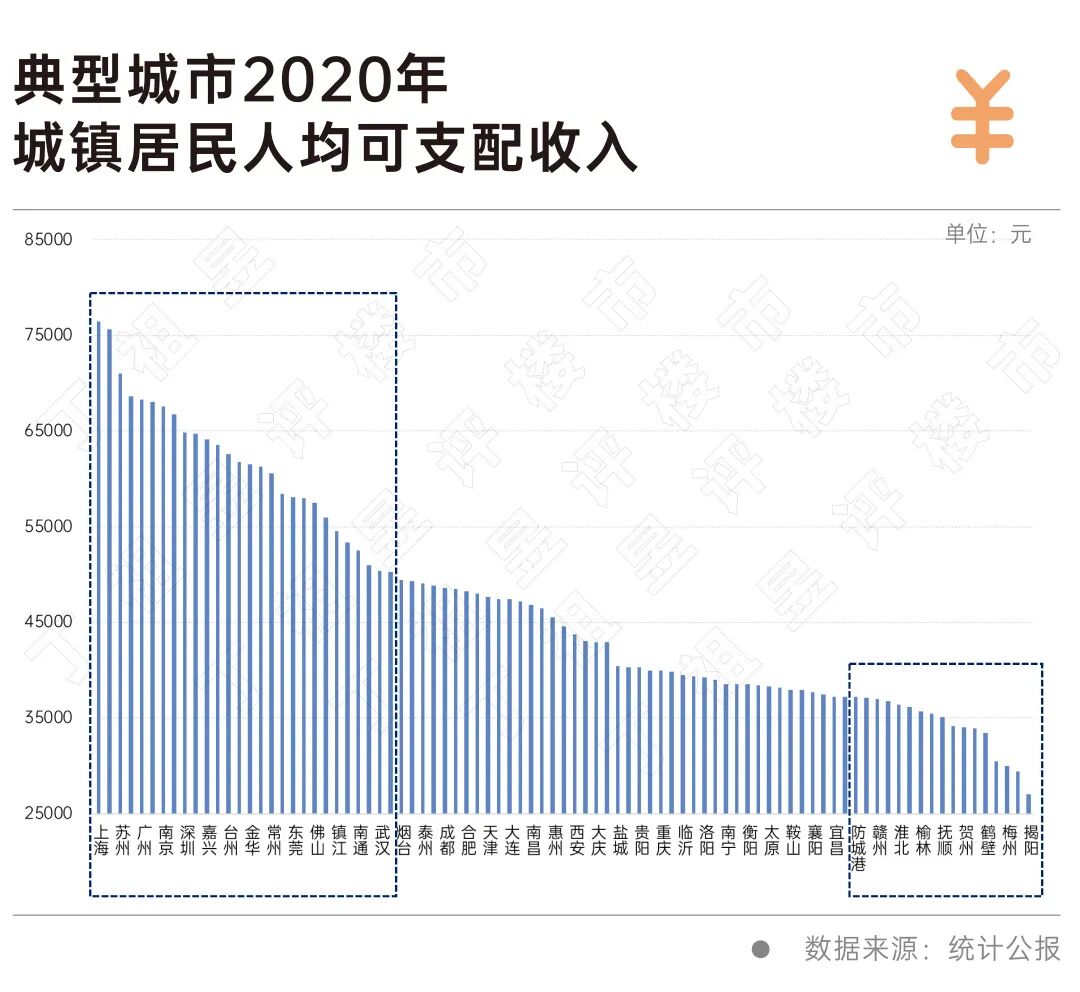 仅从购买力来看,国家统计局数据显示,2020年,上海、北京城镇居民人均可支配收入超过7.5万元,苏州、杭州、广州、宁波等14个核心一二线城市城镇居民人均可支配收入超6万元。