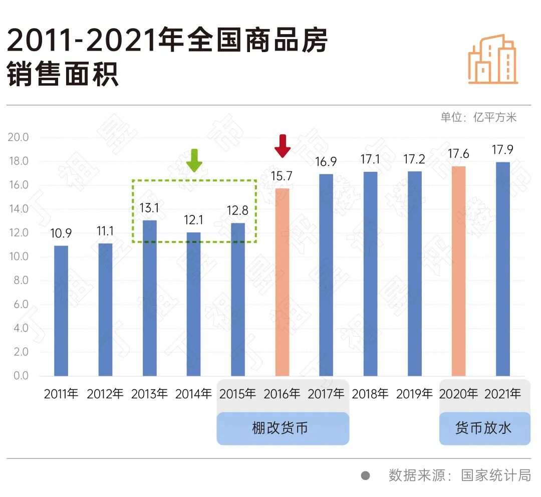 其二,2020年,受疫情影响,货币政策全面放松,预期的调整年并未到来,反倒是2020年、2021年行业销售规模迭创新高。